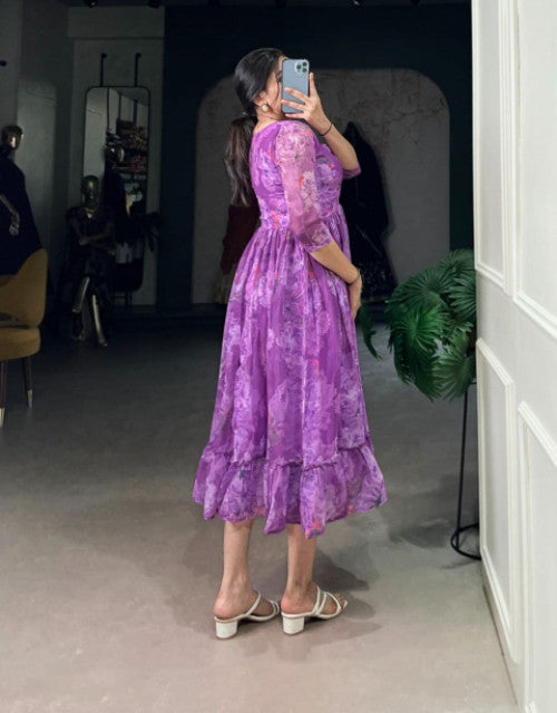 organza flore printed anarkali kurti 3 p